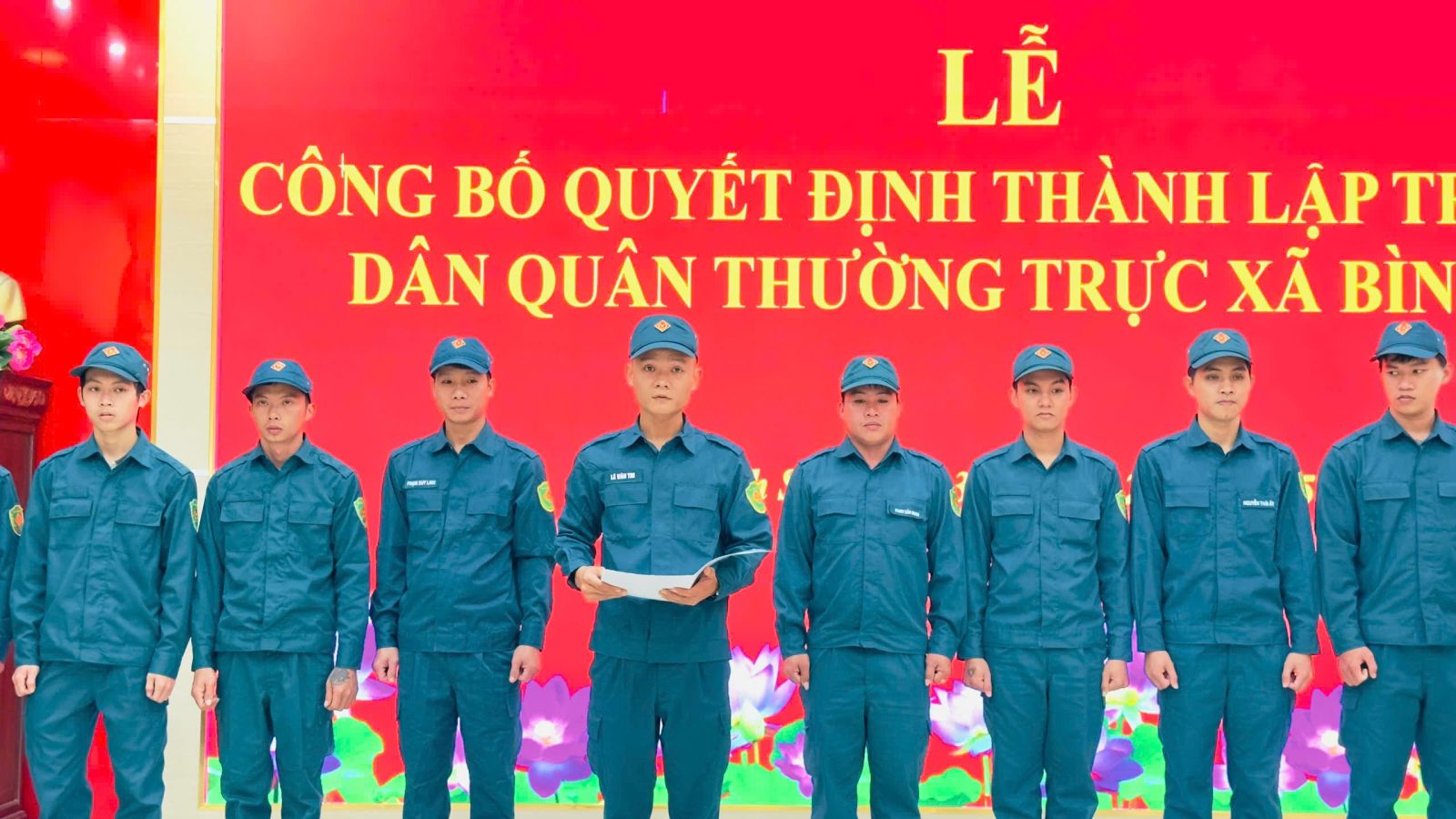 Theo đó , Ban Chỉ huy quân sự xã Bình Sơn đã bổ nhiệm: Đồng chí Lê Văn Thi giữ chức vụ Trung đội trưởng dân quân Thường trực; Đồng chí Phạm Việt Trãi, giữ chức vụ Tiểu đội trưởng Đội 1; đồng chí Lý Văn Viễn, giữ chức vụ Tiểu đội trưởng Đội 2; đồng chí Ngô Văn Tài, giữ chức vụ Tiểu đội trưởng Đội 3. Các thành viên trong trung đội đều là những chiến sĩ có phẩm chất đạo đức tốt, có bản lĩnh chính trị vững vàng, sức khỏe đáp ứng yêu cầu nhiệm vụ và đã qua đào tạo huấn luyện theo quy định.