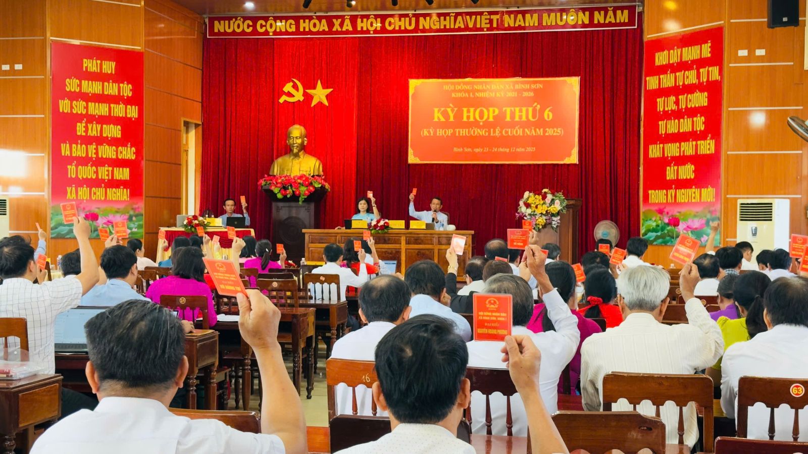 Ngày 23/12, HĐND xã Bình Sơn khóa I, nhiệm kỳ 2021 – 2026 tổ chức Kỳ họp thứ 6 nhằm đánh giá tình hình phát triển kinh tế, xã hội, quốc phòng - an ninh năm 2025 , đề ra phương hướng mục tiêu, nhiệm vụ năm 2026; đồng thời xem xét, thảo luận và thông qua các nghị quyết quan trọng thuộc thẩm quyền.