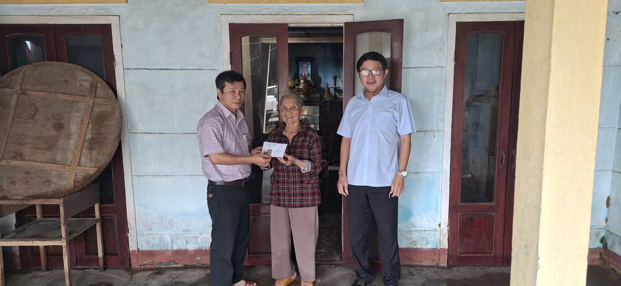 Sáng nay, 30/10 đồng chí Đinh Hùng Cường – Phó Chủ tịch Thường trực UBND xã Bình Sơn và đồng chí Võ Quốc Nam,Trưởng Phòng Kinh tế xã đã đến thăm và động viên gia đình bà Bùi Thị Thiết (sinh năm 1945), ở thôn Trung An, bị sập một phần mái nhà do ảnh hưởng của mưa lớn xảy ra chiều 29/10.