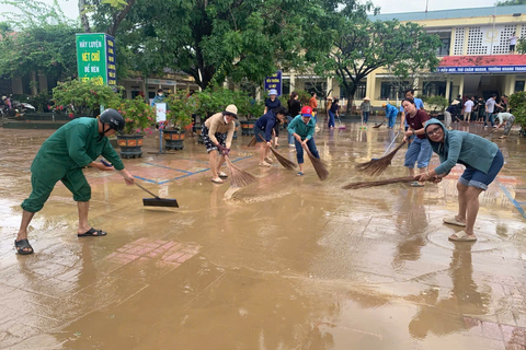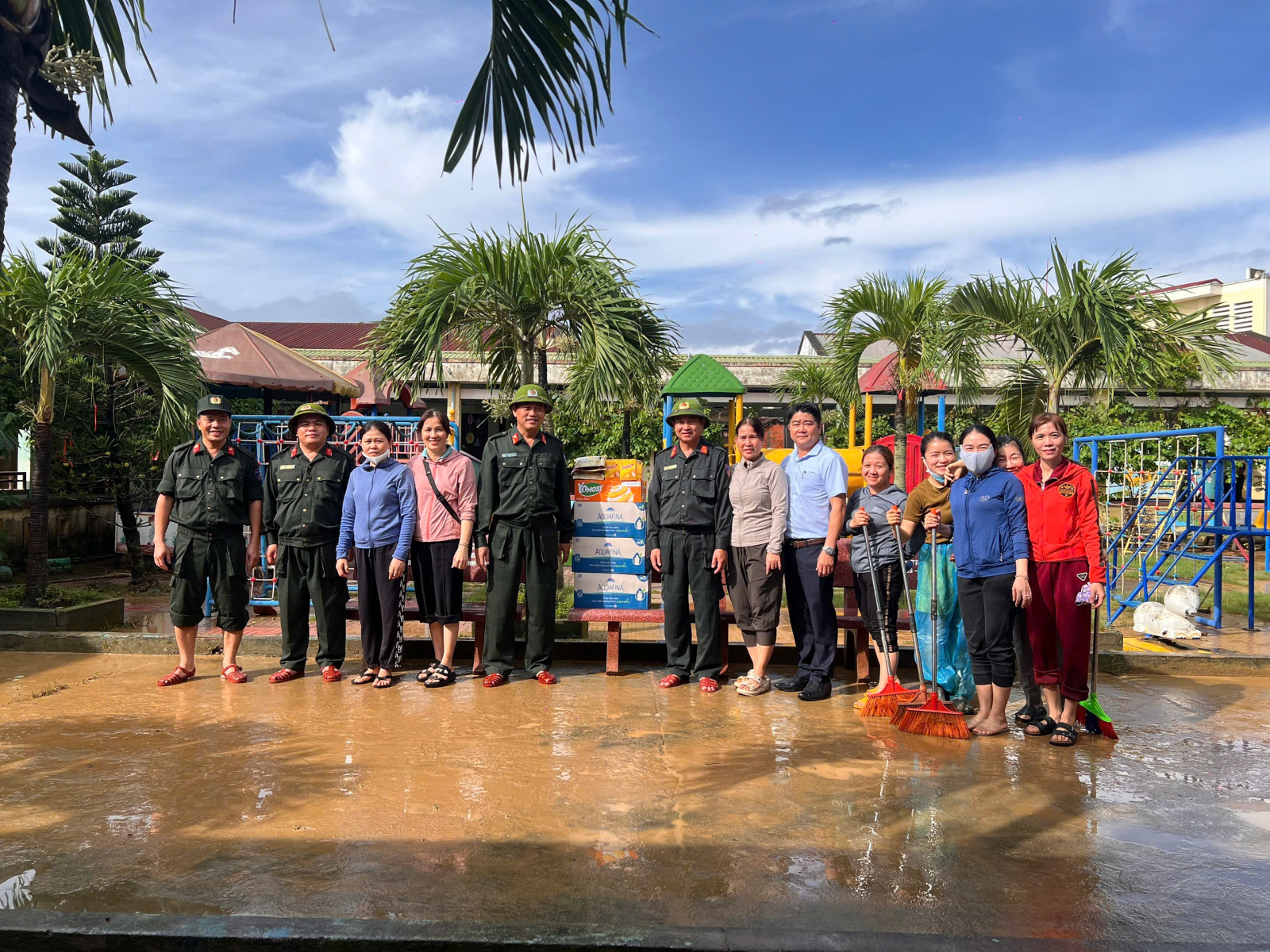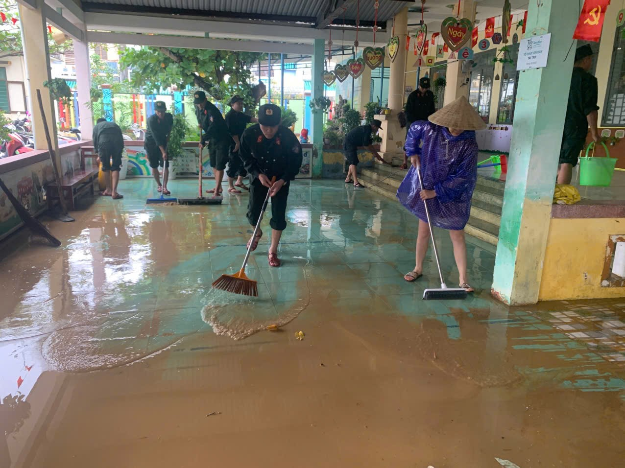 Sáng ngày 30/10, Tiểu đoàn 3 Bộ Công an, lực lượng công an xã và dân quân tự vệ cơ sở cùng với phụ huynh và giáo viên các Trường học đã đồng loạt ra quân dọn vệ sinh môi trường, khắc phục sau lũ để học sinh kịp thời đi học trở lại.