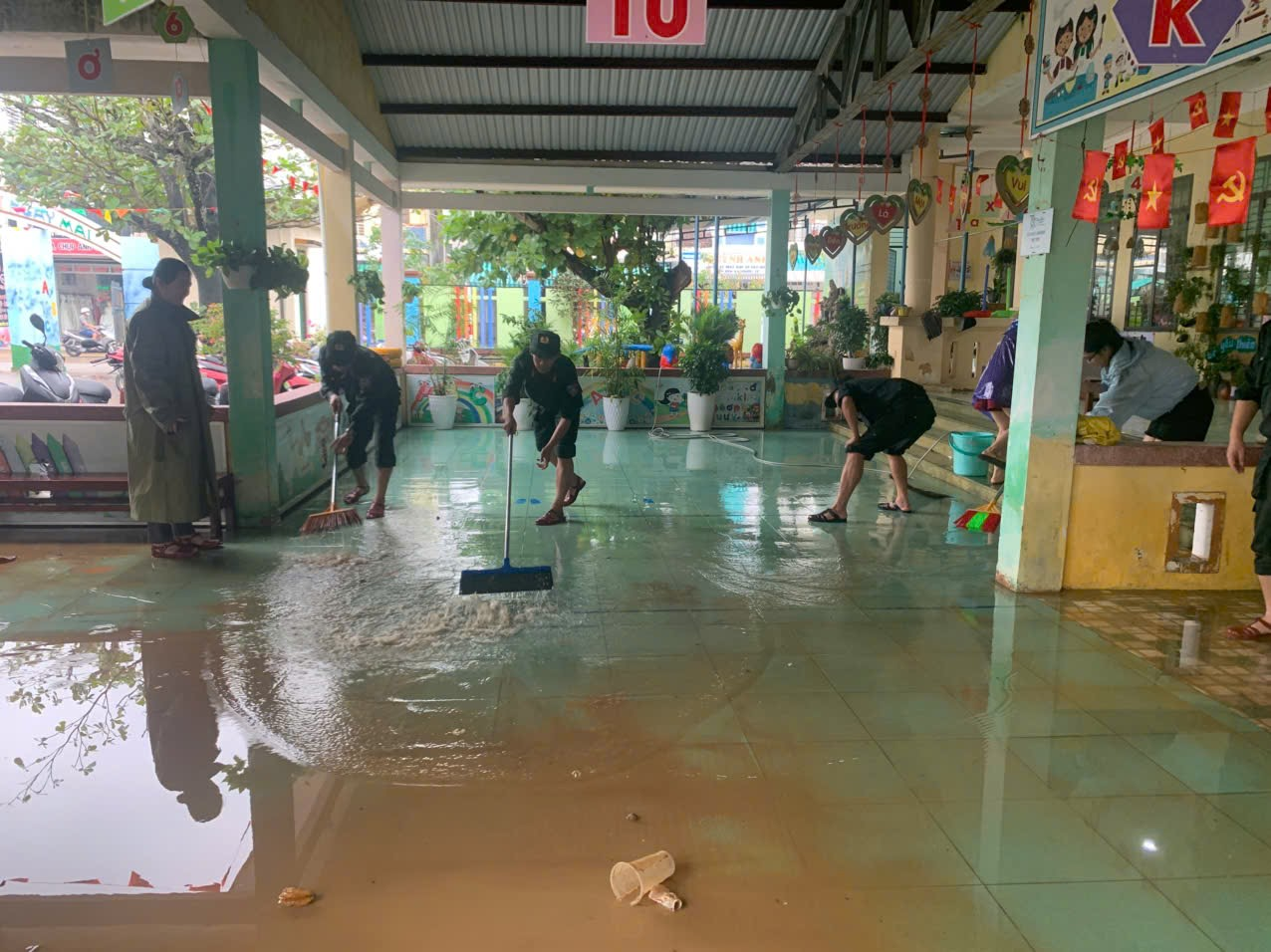 Để kịp thời khắc phục sớm cho học sinh đến trường, Tiểu đoàn 3, Bộ Công an, lực lượng vũ trang xã Bình Sơn đã đến các trường tổng dọn vệ sinh, dội rửa bàn ghế, tẩy rửa bùn đất để phấn đấu hoàn thành trong ngày, tạo môi trương trường thuận lợi cho học sinh trở lại trường vào ngày 31/10.